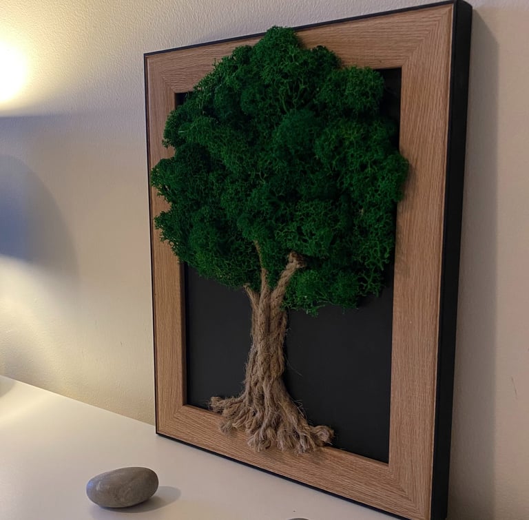 Découvrez ma collection unique de tableaux en bois et mousse stabilisée, une invitation à intégrer la nature au cœur de votre intérieur. Mes créations, composées de matériaux naturels, apportent une touche de sérénité et d'harmonie à votre décoration. Transformez votre espace avec l'élégance authentique de la nature et exprimez votre créativité tout en bénéficiant de la beauté intemporelle de mes créations uniques.